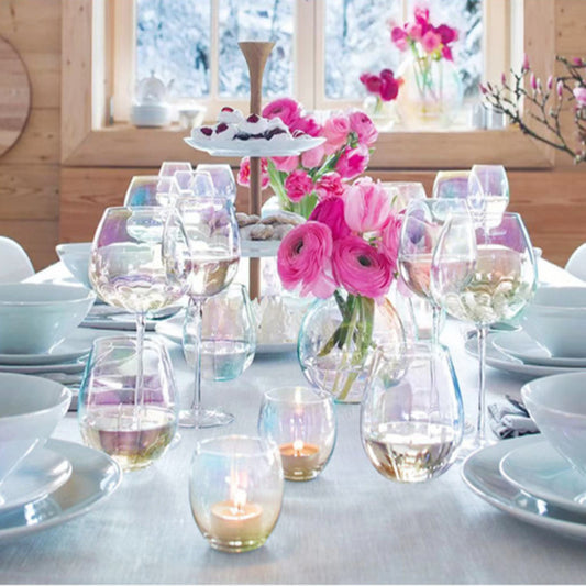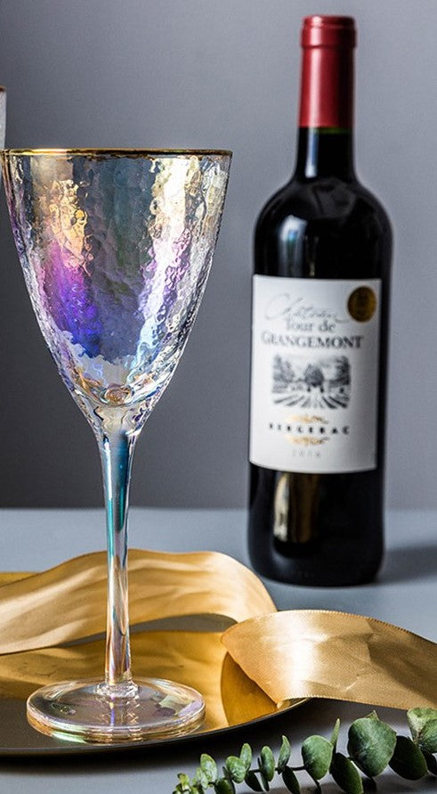Mavričen kozarec za vino z zlatim robom, set 2 kos